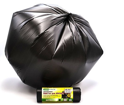 Мешки для мусора 60 литров, в рулоне 20 штук, ПНД, 12 мкм, размер 60х70 см, черные, серии «EXTRA»